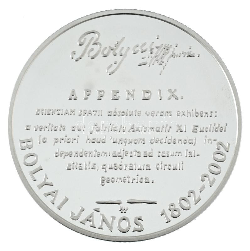 https://www.darabanth.com/en/508-Online-auction/508.0/Numismatics/Hungarian-coins-and-coins-with-Hungarian-mint-marks~836/2002-3000Ft-Ag-Bolyai-Janos-kapszulaban-tanusitvannyal-disztokban-TPP3Cbr-3E-Adamo-EM180~II3443836