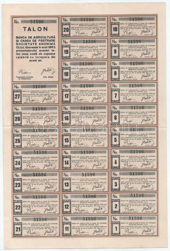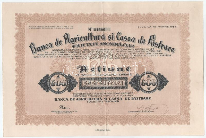 https://www.darabanth.com/en/508-Online-auction/508.0/Numismatics/Shares-and-Tickets~833/Romania-1936-Kolozsvar-Mezogazdasagi-Bank-es-Takarekkassza-reszvenye-600L-rol-szarazpe~II3437324