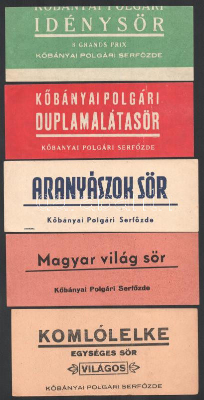 Kőbányai Polgári Serfőzde sörös címkék, 5 db különféle