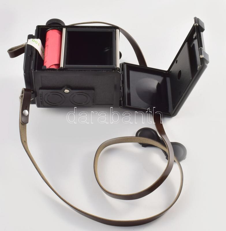 cca 1955-1970 LOMO Ljubityel 2 szovjet gyártmányú, ikerlencsés reflex fényképezőgép, 6x6 cm filmformátum, T-22 4,5/75 objektívvel, eredeti tokjában, megkímélt, jó állapotban // Lubitel 2 USSR twin-lens reflex camera, in original case, in good condition