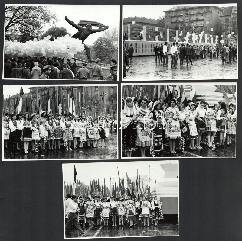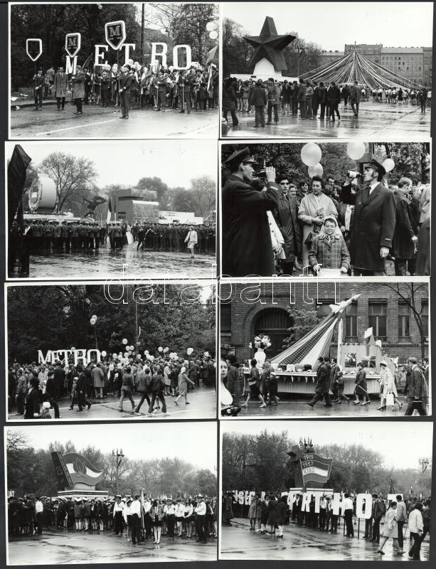 Description: 1971. május 1. A Metró Vállalat dolgozóinak társadalmi életéről készült képriport, részvétel a felvonuláson, a képek többsége datált, 13 db vintage, ezüstzselatinos fotó, 9x14 cm