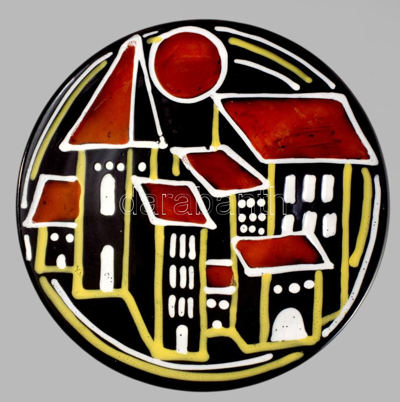 Reguly városmintás mázas kerámia falitál, jelzett, hibátlan, d: 27,5 c...
