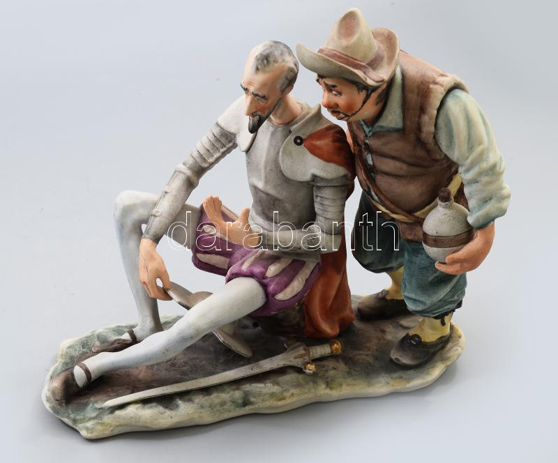 Poema Artistic Cluj Napoca (Kolozsvár) Don Quijote de la Mancha és hű társa Sancho Panza, festett porcelán, jelzett, apró kopásnyomokkal, m: 23 cm