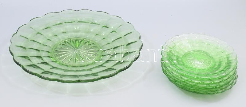 https://www.darabanth.com/en/508-Online-auction/508.0/Porcelain-ceramics-glassware/Glass-objects~64/Anyagaban-szinezett-preselt-zold-uveg-koretes-szett-6-tallal-hibatlan-d-18-33-cm~II3404077