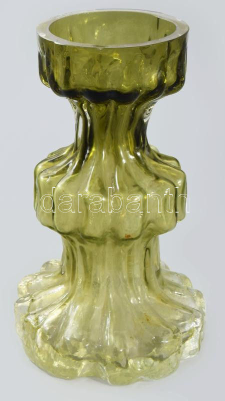 Osztrák jégüveg üveg váza. Anyagában színezett, formába öntött, hibátlan, m: 19 cm