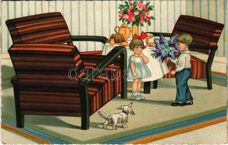 1935 Children art postcard, romantic couple. "MIKU" Nr. 3056.