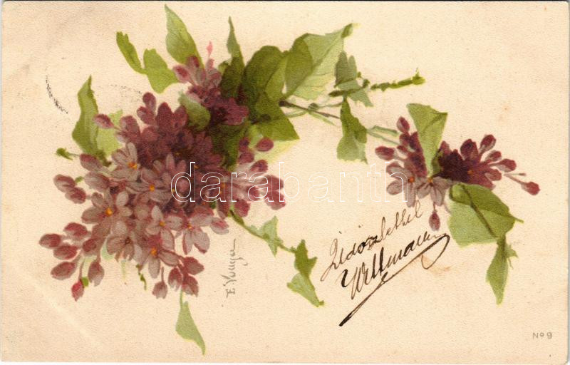 1901 Purple flowers, litho s: E. Vouga (?) (fl)