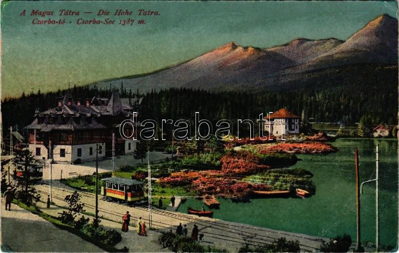 Tátra, Magas-Tátra, Vysoké Tatry; Csorba-tó, villamos megállóhely / St...