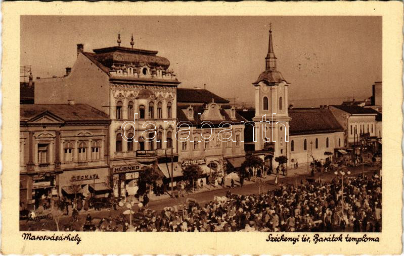 https://www.darabanth.com/en/508-Online-auction/508.0/Postcards/Transylvania~582/1941-Marosvasarhely-Targu-Mures-Szechenyi-ter-Baratok-temploma-Hubner-Jozsef-Emil-uzlet~II3442071
