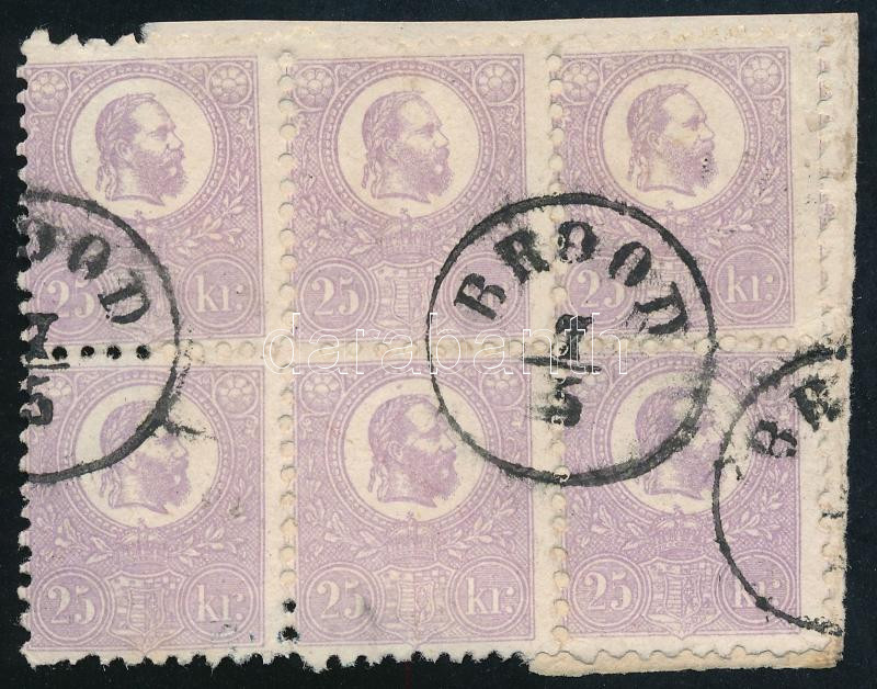 1871 Kőnyomat 25kr fekvő hatostömb VII-VI-X/II-I-V. típusokban, UV-véd...