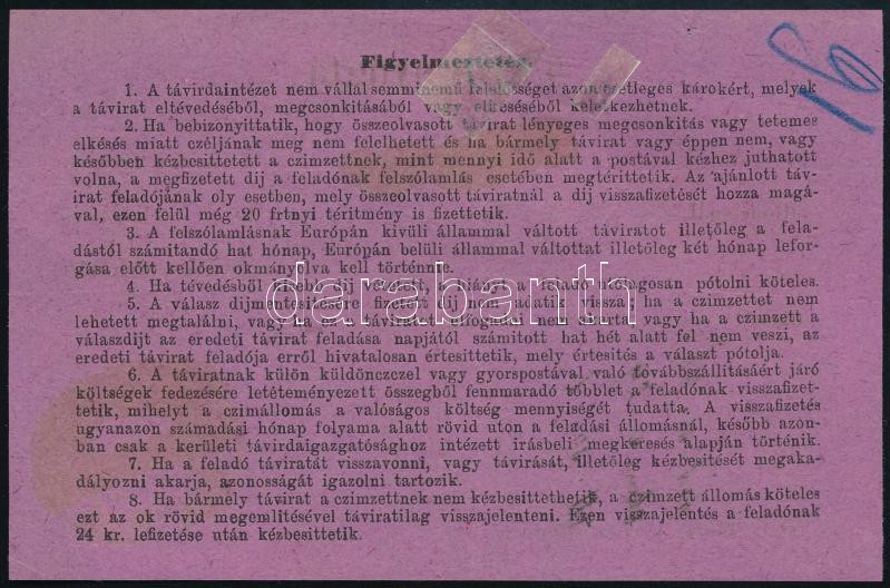 1882 Rendkívül ritka, lila színű 5kr-os nyugta "M.K. TÁVIRDA ÁLLO...