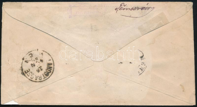 1887 5kr díjjegyes boríték, a díjjegy dombor nyomata erősen eltolódott...