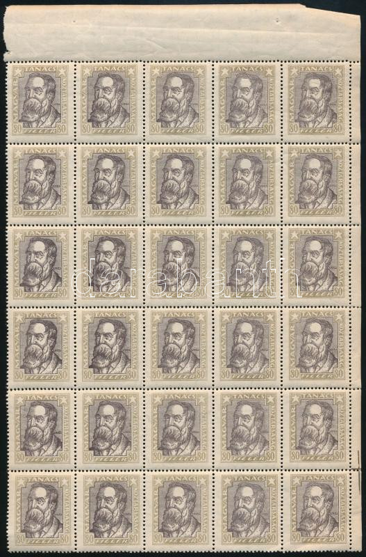 1919 Magyar Tanácsköztársasági arcképek 80f 30-as ívdarab álló vízjell...