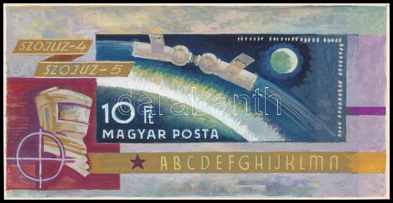 1969 Légrády Sándor Szojuz-4 - Szojuz-5 bélyegterve a tervező aláírásá...
