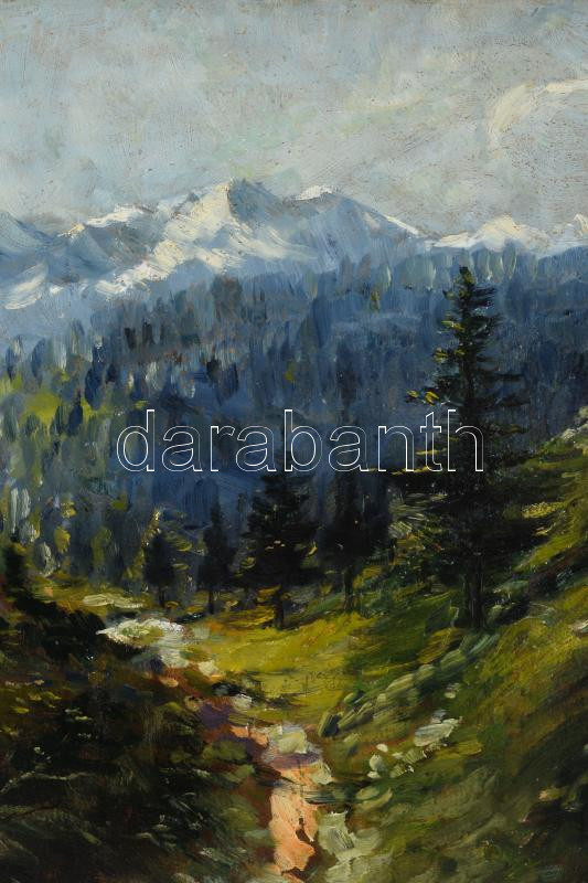 Olvashatatlan jelzéssel: Hegyvidéki táj. Olaj, karton. Fakeretben. 44,5×61,5 cm