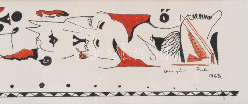 Olvashatatlan jelzéssel: Nagy Ő. Tus, papír. Üvegezett fakeretben, 8×2...