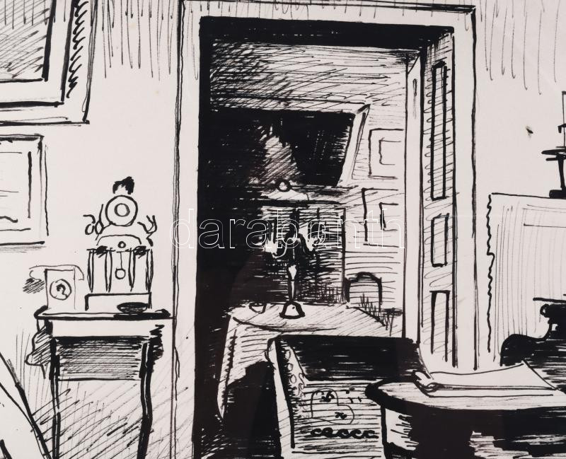 Bornemisza Géza (1884-1966): Enteriőr képekkel, 1937. Tus, papír. Jele...