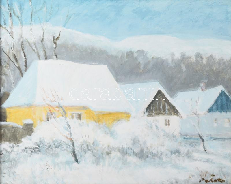 Pataki József (1928-1995): Téli táj. Olaj, farost. Jelzett. Hátoldalán...