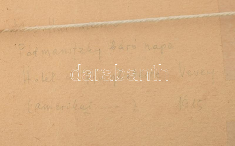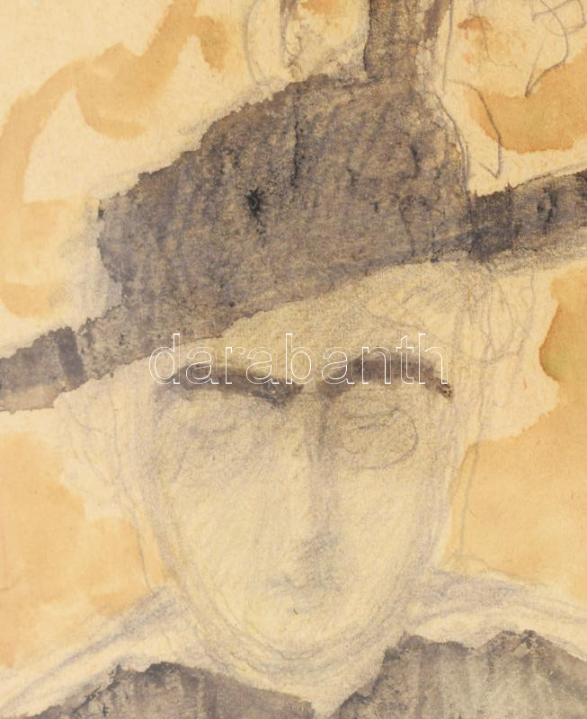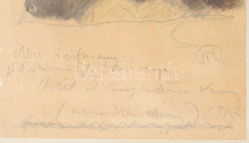 Rippl-Rónai József (1861-1927): Hölgy kalapban (Mrs. Hartmann), Vevey, 1915. Ceruza, akvarell, papír, jelezve jobbra lent RR. Lap alján Rippl-Rónai József autográf feliratával: "Mrs Hartmann. Podmanitzky báró napa. Hotel d'Angleterre Vevey. (amerikai asszony) 1915" Proveniencia: Vásárlás a budapesti Piktúra Galériában. A rajzot azonosította Rum Attila művészettörténész. 13,5x7 cm. Üvegezett fakeretben. Rippl-Rónai Józsefet 1914 nyarán, az I. világháború kitörése idején internálták Franciaországban. Szabadulása után különböző svájci településeken tartózkodott, mielőtt hazatért volna Magyarországra. Az időszakban készült műveiből tárlatot rendeztek az Ernst Múzeumban 1915-ben, amelyről a Művészet c. folyóiratban Dömötör István számolt be: " (...) A kiállítás e kikapott darabjain kívül, még jobban hivatkozhatunk a gyűjtemény egészére amely az Ernst-muzeum termeit szorongásig megtöltötte, s amelynek csak kevés darabja készült itthon, azóta, hogy Rippl-Rónai Svájc Vevey nevű városkájából megjött. Rippl-Rónai mindig termékeny művész volt. Nem a hamar kifáradó, énervait, nehezen vajúdó alkotók közül való. Alig hisszük azonban, hogy egy esztendő leforgása alatt, más körülmények közt többet produkált volna annál, mint amit dús és szuverén talentuma most sorakoztatott együvé, Issy L'Eveque, Macon, Chartreus, Vevey aláírású rajzokban és festményekben. Aki végignézte a kiállítást, örvendve láthatta továbbá, hogy a művészt nem hagyta el régi, aranyat érő humora és elméssége. Képeinek elnevezése mindig sajátos volt, valamikor vörös posztóként ingerelte az akadémikus ízlést, de ez a stilizáló hajlandóság soha nem virágzott különbül, mint most, azokban az egyéni zamatú jegyzetekben amelyek rajzlapra írva egy-egy rajz modelljét, keletkezését kommentálják (...) Valószínűleg két oka van annak, hogy Rippl-Rónai művei közt ezúttal a grafika foglalta el a trónt, hogy néhány portré-festmény mellett rajzok vésődtek legjobban emlékezetünkbe. Az egyik az a külső momentum, hogy a művész, franciaországi időzése alatt, nem válogathatott tetszése szerint technikai eszközökben. Meg kellett elégedni a zsebben hordható ceruzával és tollszárral, annak is a vastagabb végével. A másik ok a művész körül hullámzó, különös ritmusú élet, amely őt magát is meglepő szituációkba sodorta, tele volt a szinek, formák, arcok és gesztusok mozgalmasságával, az idegek, a légkör feszültségével. (...)"/ pencil and watercolour on paper, signed, framed.