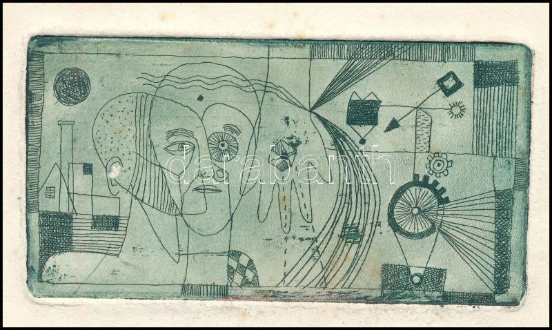 Tassy Béla (1942-): Fej, 1960-as évek. Rézkarc, papír, jelzés nélkül, ...
