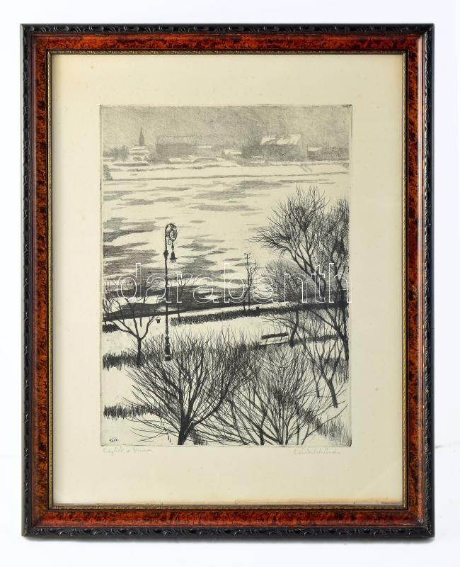 Zádor István (1882-1963): Zajlik a Duna. Színezett rézkarc, papír, jel...