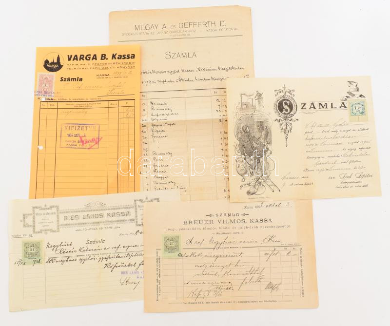 ca 1900-1920 Kassa 5 db klf fejléces számla, kereskedőktől, iparosoktó...