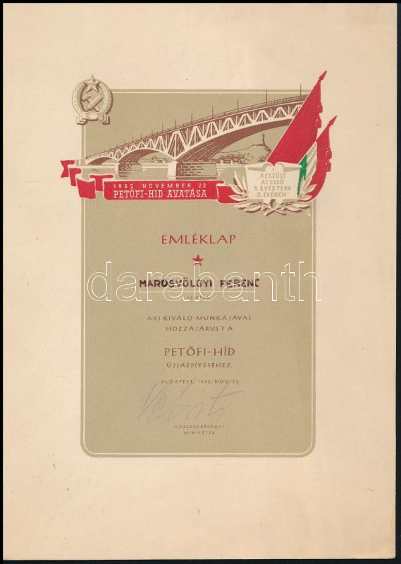 https://www.darabanth.com/en/510-Online-auction/510.0/Art-and-other-collectibles/Documents~803/1952-Bp-Emleklap-a-Petofi-hid-ujjaepitesenel-vegzett-kivalo-munkaert~II3453348
