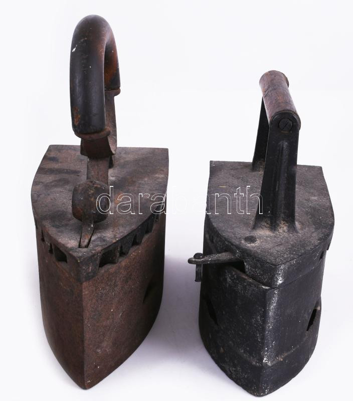 2 darab vas szenes vasaló, sérült, m: 19-23 cm