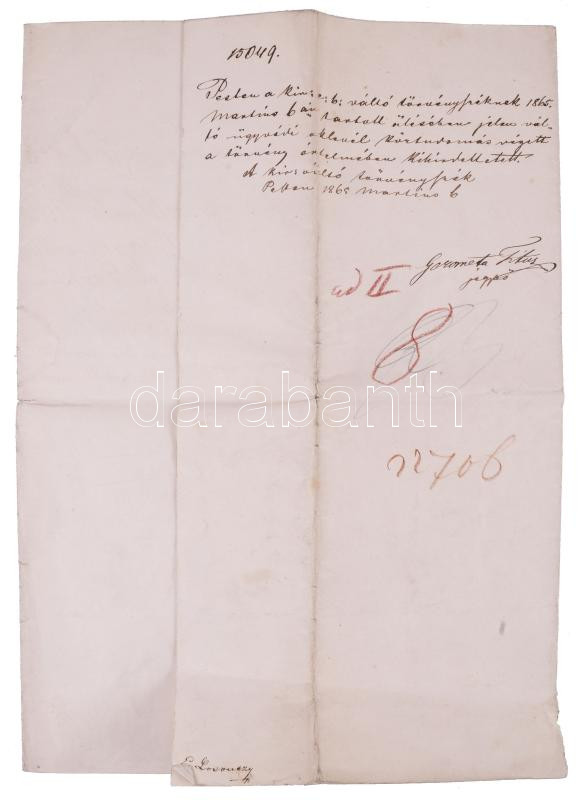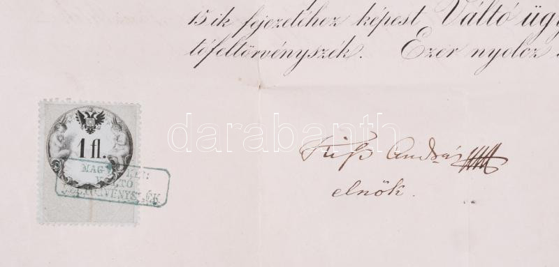 1865 Lechner Gyula (1841-1914) jogász, festÅ‘művész, grafikus, szobrász, iparművész, rajztanár, műfordÃtó Lechner Ödön épÃtész testvére, váltóügyvédi oklevele, császári szárazbélyegzÅ‘vel és 1Fl illetékbélyeggel.