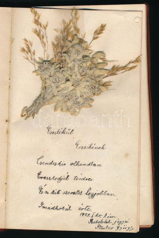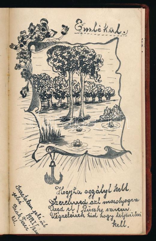 1918-1921 Bp.-Újpest, Erzsike nevű lány emlékkönyve, kb. 25 oldalnyi b... https://www.darabanth.com/en/510-Online-auction/510.0/Art-and-other-collectibles/Historical-documents-manuscripts~804/1918-1921-Bp-Ujpest-Erzsike-nevu-lany-emlekkonyve-kb-25-oldalnyi-bejegyzessel-rajzokkal-~II3444884