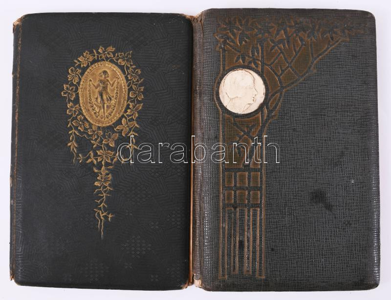 cca 1930-1940 2 db régi emlékkönyv bejegyzésekkel, rajzokkal, részben ...