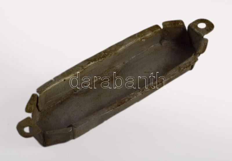 Kézzel készült (frontmunka?) mezuza, fém, h: 11 cm