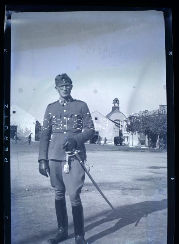 7 darab magyar királyi katonákat ábrázoló 6x9 cm-es fotónegatív