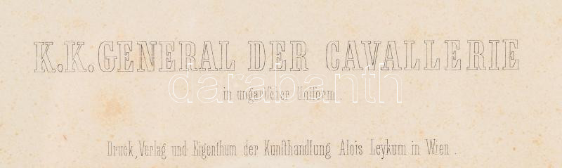 XIX. közepe/XIX vége K.K. General der Cavallerie, Wien, Alois Leykum, litográfia, papír, modern üvegezett fakeretben, paszpartuban, foltos, 39x27 cm, keret: 60x45 cm