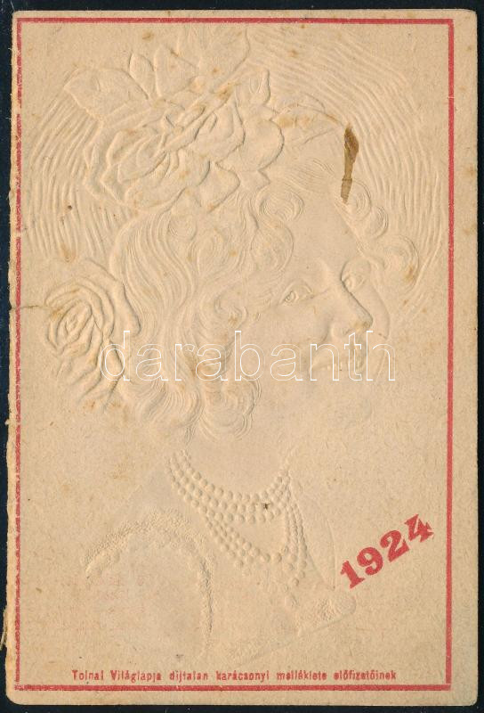 1924 Zsebnaptár, a Tolnai Világlapja karácsonyi melléklete, kiadói tűzött papírkötés, dombornyomott borítóval