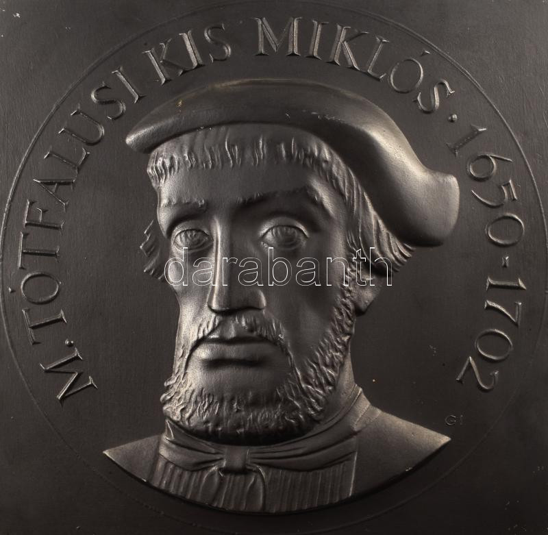 Gergely István (1939-2008): M. Tótfalusi Kis Miklós . Festett gipsz plakett. Jelzett, kopásokkal. 30x30 cm