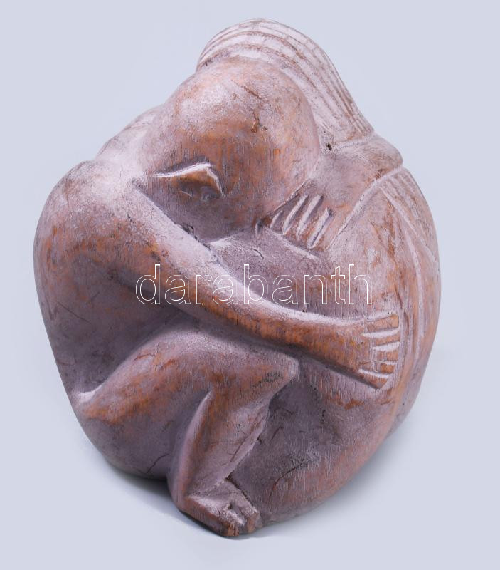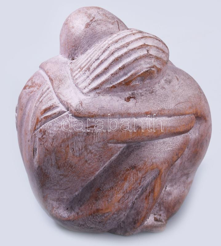 Jelzés nélkül: Ölelkező alakok. Faragott fa, hibátlan. 14 cm