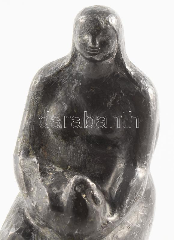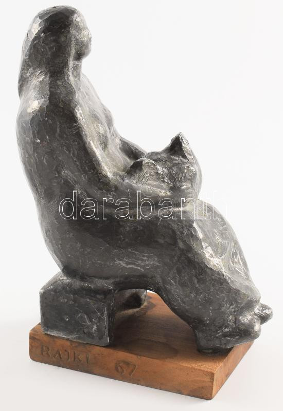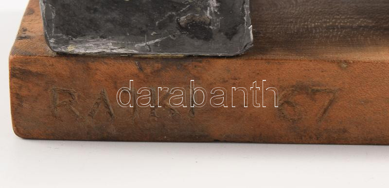 Rajki László (1938-): Kofa. Ólom szobor fa talapzaton. Jelzett, 1967, m: 15 cm