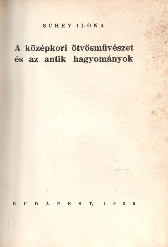 Bud... https://www.darabanth.com/en/510-Online-auction/510.0/Books/Books-Architecture-Art~771/Schey-Ilona--A-kozepkori-otvosmuveszet-es-az-antik-hagyomanyok3Cbr3E-Budapest-1935-Szer~II3449855