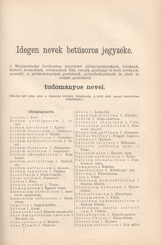 A mezÅ‘gazdasági tudásanyag javát illusztrált szócikkekben közlÅ‘ lexikonunk elsÅ‘ kiadása 1906-ban jelent meg. A cÃmlap tájékoztatása szerint a kéthasábos szövegoldalakon elhelyezett szócikkek az állatgyógyászat, az állattenyésztés, a borászat, az erdészet, a gazdasági üzletvitel, a gyümölcsészet, a haltenyésztés, a kertészet és méhészet, a selyemhernyó-tenyésztés, a szÅ‘lészet, a takarmányozás, a talajjavÃtás és tejgazdaság kérdéseit tárgyalják, ám a közzétett tudásanyag bÅ‘vebb, a fentieken kÃvül a mezÅ‘gazdasági bérlés, épÃtkezés, és a mezÅ‘gazdasági munka- és gazdasági jog számos tudnivalóját közreadják. Példányunk a második, javÃtott kiadásból való. A munka két kötetben teljes.