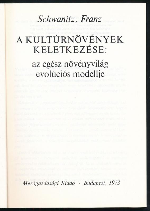 Schwanitz, Franz: A kultúrnövények keletkezése. 2000 pld. Bp., 1973, M...