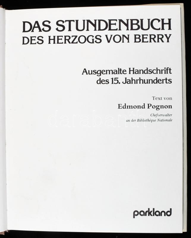 Edmond Pognon: Das Stundenbuch des Herzogs von Berry. Ausgemalte Hands... https://www.darabanth.com/en/510-Online-auction/510.0/Books/Books-History~769/Edmond-Pognon-Das-Stundenbuch-des-Herzogs-von-Berry-Ausgemalte-Handschrift-des-15-Jahrhunderts-h~II3448272