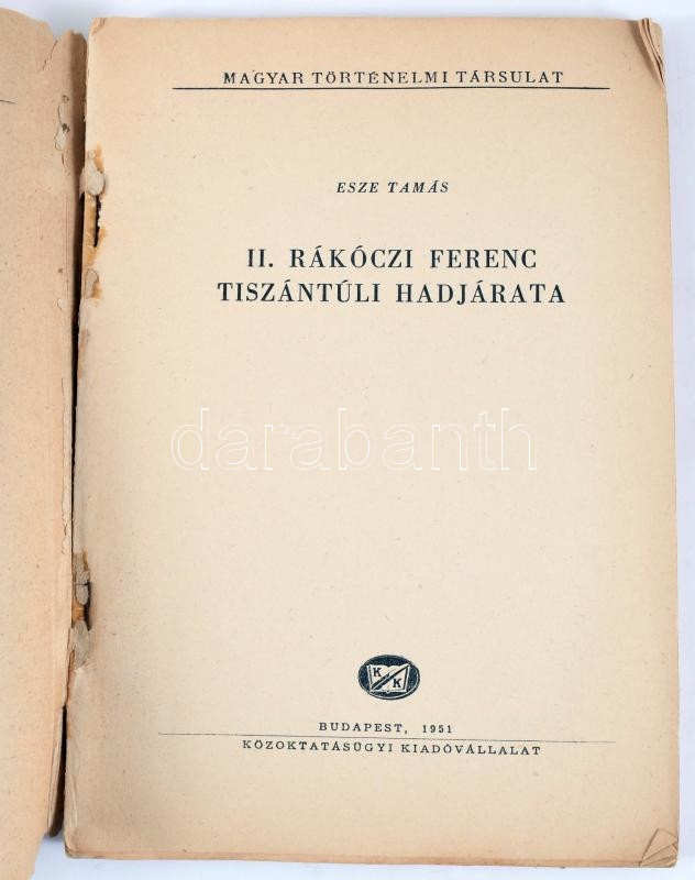 Közoktatásügy... https://www.darabanth.com/en/510-Online-auction/510.0/Books/Books-History~769/Esze-Tamas-II-Rakoczi-Ferenc-tiszantuli-hadjarata---Kozoktatasugyi-Kiadovallalat-1~II3452252