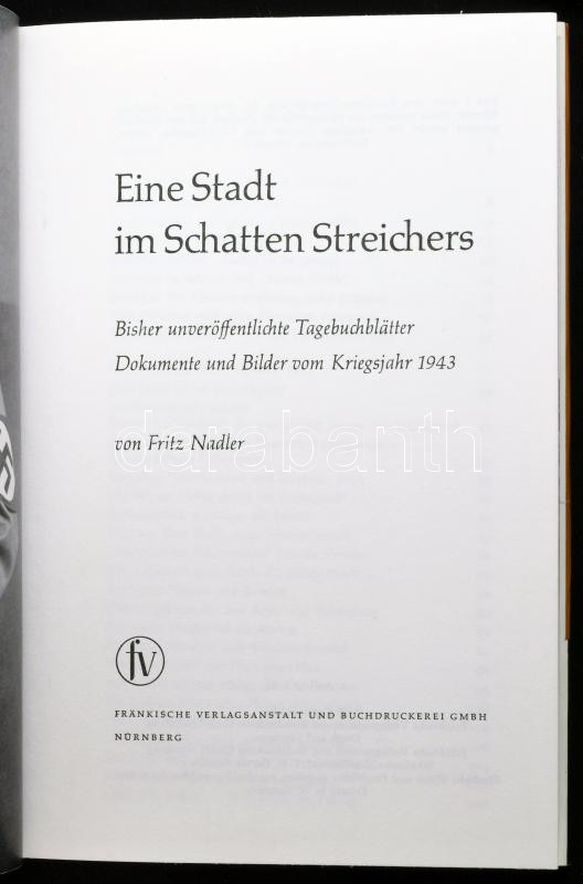 Fritz Nadler: Eine Stadt im Schatten Streichers. Bisher unveröffentlic... https://www.darabanth.com/en/510-Online-auction/510.0/Books/Books-History~769/Fritz-Nadler-Eine-Stadt-im-Schatten-Streichers-Bisher-unveroffentlichte-Tagebuchblatter-Dokumen~II3448289