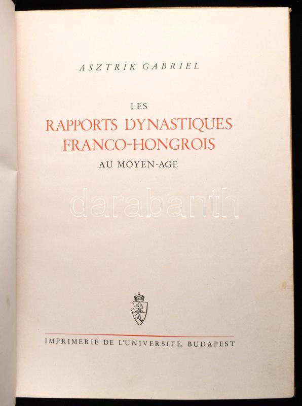 [Gábriel Asztrik László] Asztrik Gabriel: Les rapports dynastiques Fra... https://www.darabanth.com/en/510-Online-auction/510.0/Books/Books-History~769/Gabriel-Asztrik-Laszlo-Asztrik-Gabriel-Les-rapports-dynastiques-Franco-Hongrois-au-moyen-age-~II3455430