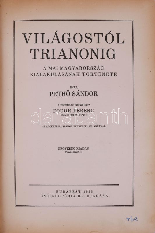 Pethő Sándor: Világostól Trianonig. A mai Magyarország kialakulásának ... https://www.darabanth.com/en/510-Online-auction/510.0/Books/Books-History~769/Petho-Sandor-Vilagostol-Trianonig-A-mai-Magyarorszag-kialakulasanak-tortenete-A-foldraj~II3446038