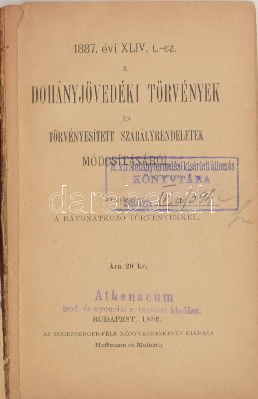 1887. évi XLIV. t.-cz. A Dohányjövedéki törvények és törvényesített sz... https://www.darabanth.com/en/510-Online-auction/510.0/Books/Books-Law~768/1887-evi-XLIV-t-cz-A-Dohanyjovedeki-torvenyek-es-torvenyesitett-szabalyrendeletek-mo~II3193101