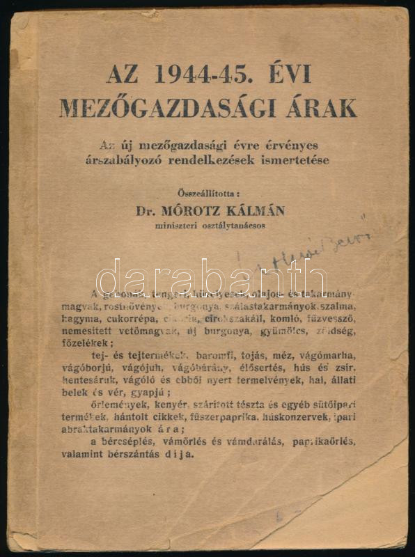 Mórotz Kálmán: Az 1944-45. évi mezőgazdasági árak. Az új mezőgazdasági... https://www.darabanth.com/en/510-Online-auction/510.0/Books/Books-Law~768/Morotz-Kalman-Az-1944-45-evi-mezogazdasagi-arak-Az-uj-mezogazdasagi-evre-ervenyes-a~II3413679