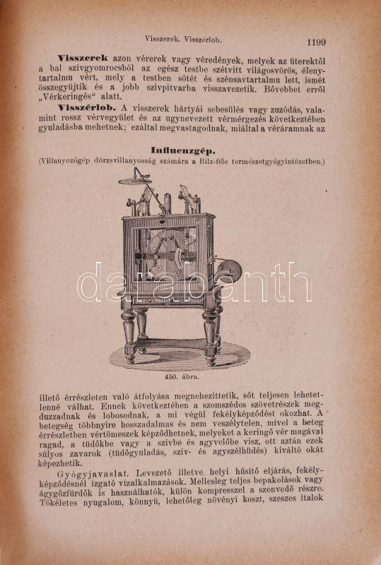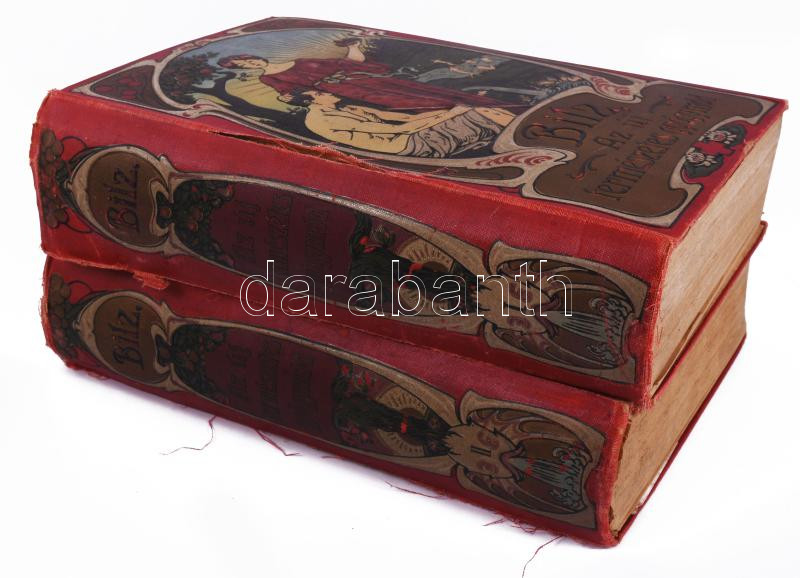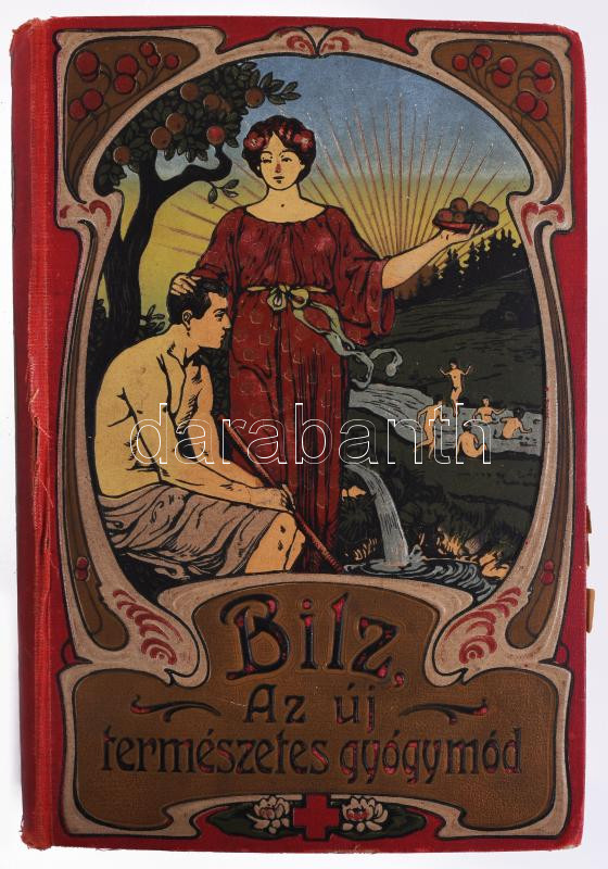 Bilz, F. E.: Az új természetes gyógymód. I-II. kötet. A természetszerű gyógyeljárás és egészségápolás tan- és kézikönyve. Több száz a szöveg közé nyomtatott képpel, számos szÃnes melléklettel, a szerzÅ‘ arcképével, és több, az emberi test alkatát és szerveit ábrázoló szétvehetÅ‘ szÃnezett mintával. [Leipzig, 1905, szerzÅ‘i kiadás.] Kiadói illusztrált, festett, szecessziós egészvászon-kötés, viseltes állapotban, sérült borÃtókkal és gerincekkel, hiányzó cÃmlapokkal, helyenként sérült, kijáró lapokkal és mellékletekkel (hiányok elÅ‘fordulhatnak).