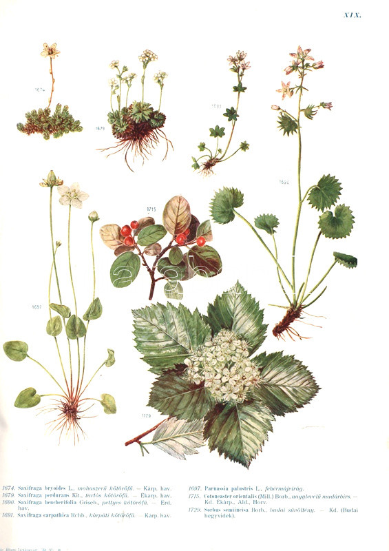 Jávorka Sándor - Csapody Vera: A magyar flóra képekben. Iconographia florae Hungaricae. 40 színes táblával, 576 oldalon 2017 növény fekete rajzával és 72 fényképpel.